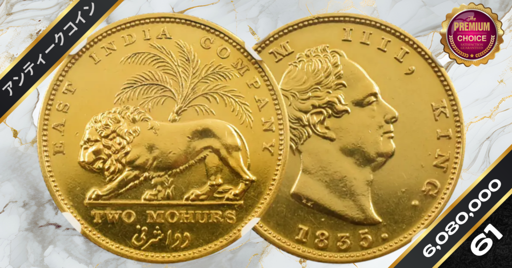 今回ご紹介する「1835年 英領インド ウィリアム4世 2モハール金貨 リストライク NGC PF61」は、まさにその典型ともいえる存在。19世紀、イギリスがインド統治を確立していく中で誕生したこの金貨は、植民地時代の歴史を象徴すると同時に、驚くほど精緻な美術的完成度を誇ります。