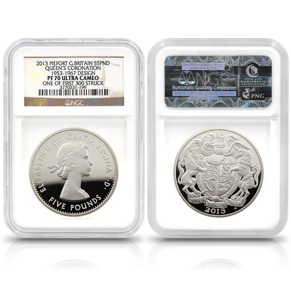 イギリス 2013 エリザベス2世 戴冠60周年記念 5ポンドピエフォー銀貨 4枚セット ファースト300ストラック NGC PF70UC