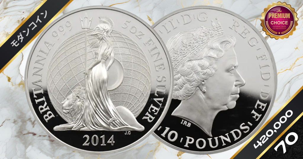 ブリタニアは英国コインの中でも人気の高いテーマですが、この2014年版5オンス銀貨は、その中でも王道の魅力と確かな存在感を兼ね備えた1枚といえるでしょう。
