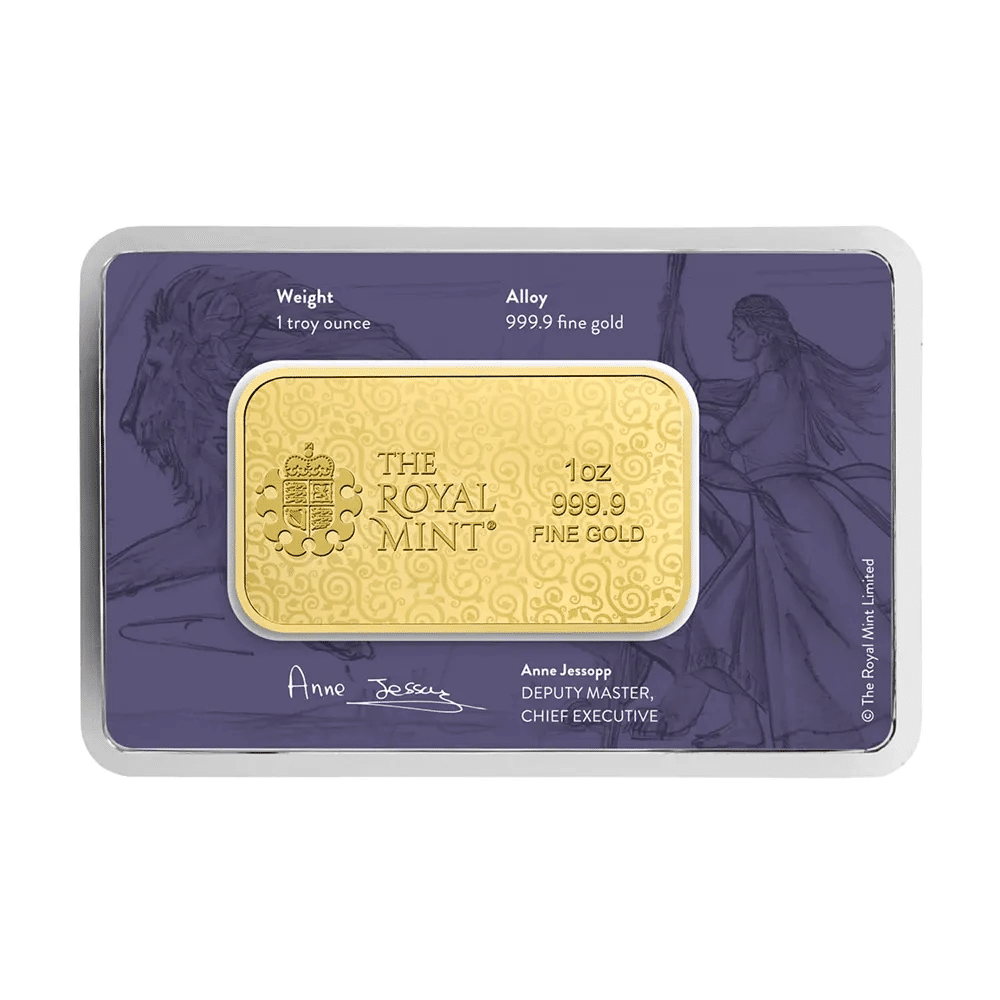 今回ご紹介するのは、英国王立造幣局が誇る芸術と威厳を凝縮した逸品、『イギリス 2025 ウナとライオン 金の延べ板 1オンス ゴールドバー(ブリスターパック付き)』です。ゴールドバーという実用性と、芸術性あふれるデザインが見事に融合した特別な一枚です。