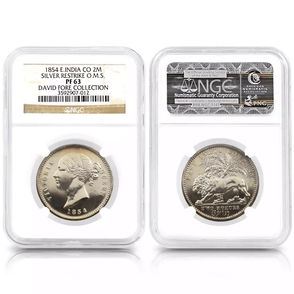 東インド会社 1854 ヴィクトリア女王 2モハール・モハール・10ルピー・5ルピー銀貨4枚セット リストライク NGC PF62-66