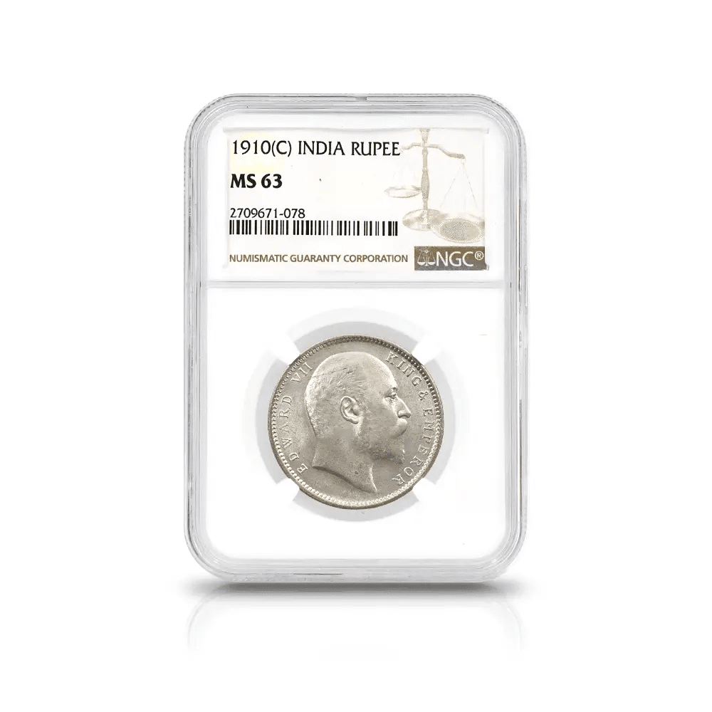 英領インド 1910C エドワード7世 ルピー銀貨 NGC MS63