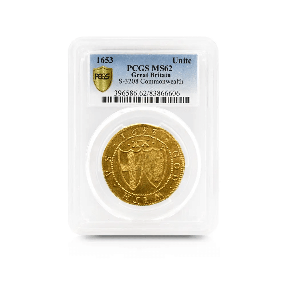 今回ご紹介したいのは、歴史の中で異彩を放つ貴重な逸品、『1653年 コモンウェルス ユナイト金貨 PCGS MS62 S-3208』です。歴史の中で特別な意味を持つこの一枚を手に、毎日をより豊かな時間に変えてみませんか?