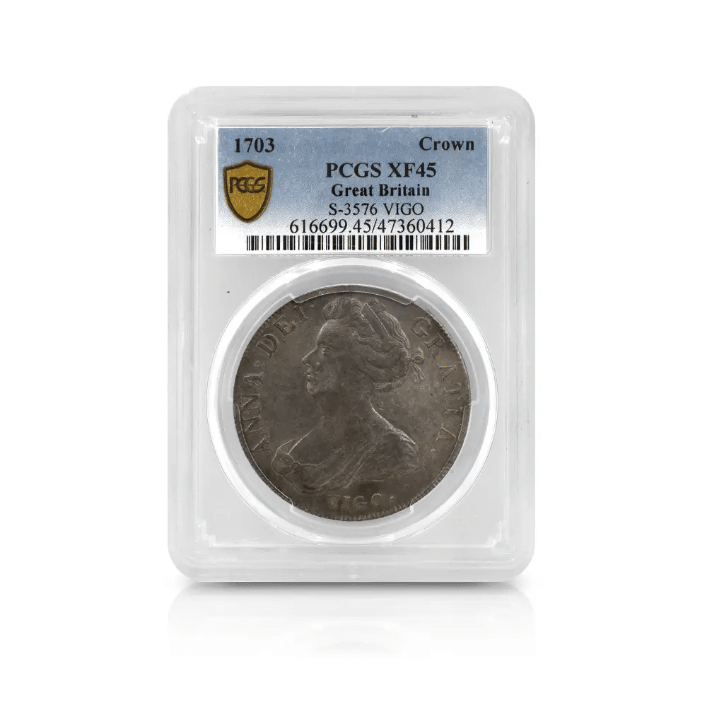 1703 アン女王 VIGO クラウン銀貨 PCGS XF45