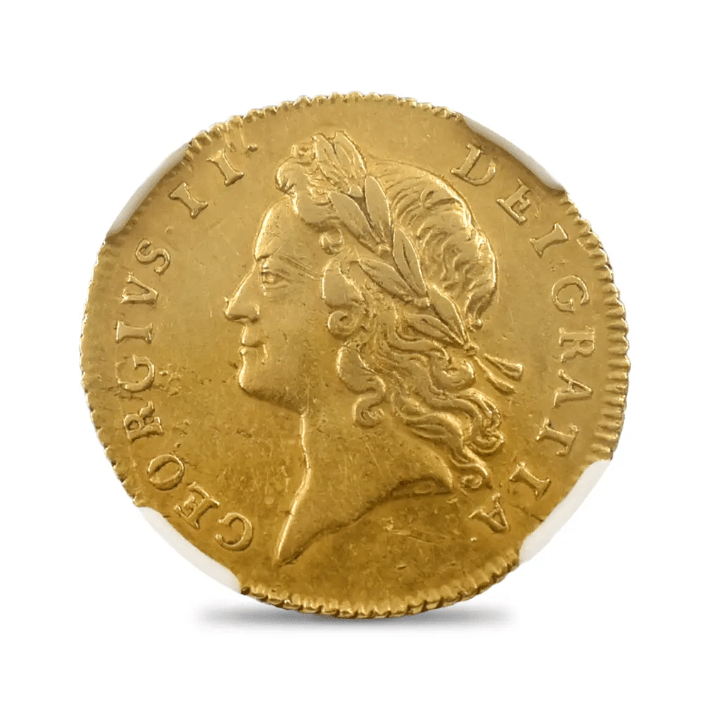 今回ご紹介する「1734年 ジョージ2世 1/2ギニー金貨 NGC AU53」は、18世紀英国の華やかな時代を映し出す逸品。コンパクトな1/2ギニーのサイズながら、その存在感と気品は比類なく、投資と美術の両側面から魅了してくれる一枚です。