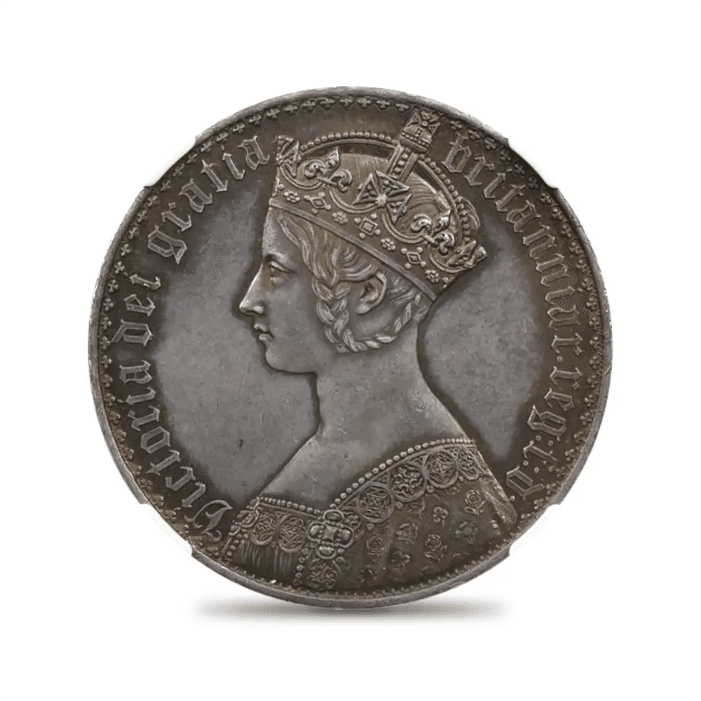1847年は、若くして即位したヴィクトリア女王の治世10周年という記念すべき年。この年に発行されたゴチッククラウン銀貨は、その気品と洗練されたデザインから「英国史上最も美しい銀貨」と呼ばれてきました。