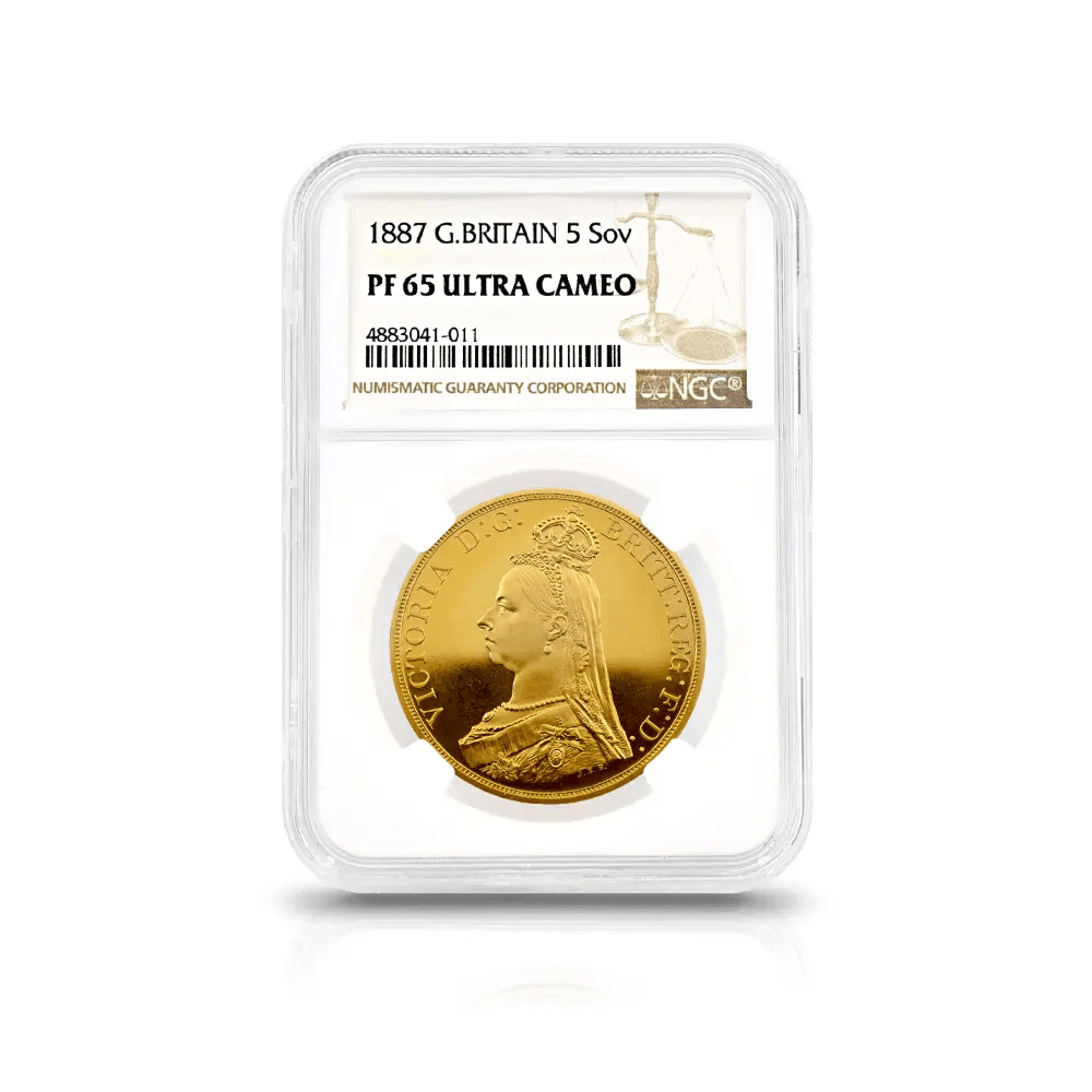 1887 ヴィクトリア女王 ジュビリーヘッド 聖ジョージ竜退治 5ソブリン金貨 NGC PF65UC