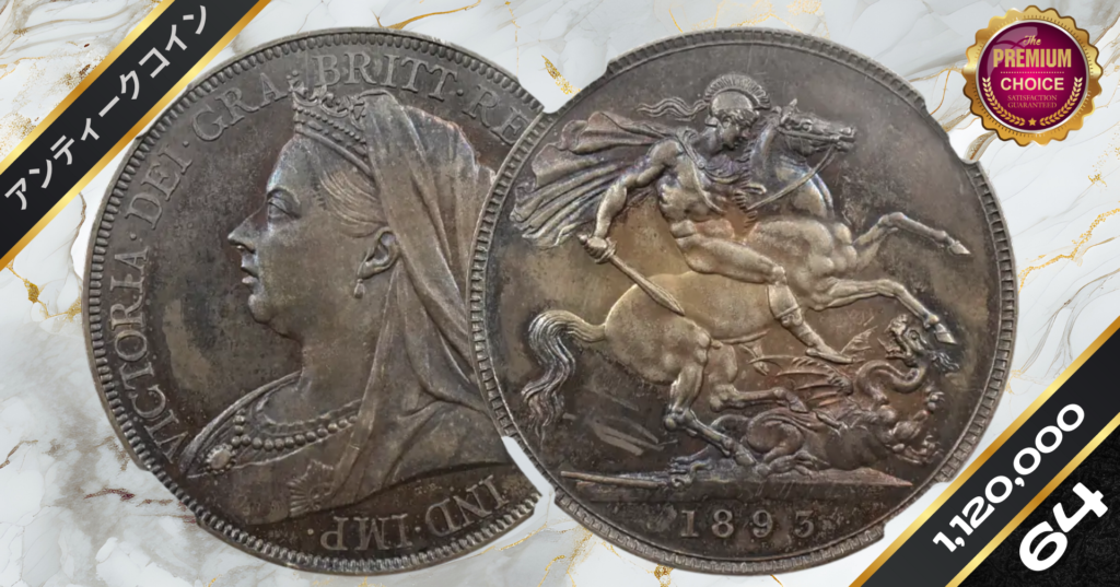 今回ご紹介するのは、ヴィクトリア時代を締めくくる名品「1893年 ヴィクトリア女王 オールドヘッド 聖ジョージ竜退治 クラウン銀貨 NGC PF64」。英国コイン史において重要な意味を持つ特別な一枚です。