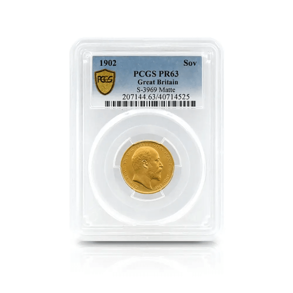 1902年のマットプルーフ・ソブリン金貨は発行枚数が少なく、世界中のコレクターが注目する存在です。その希少性は、市場における価値を確固たるものにしています。