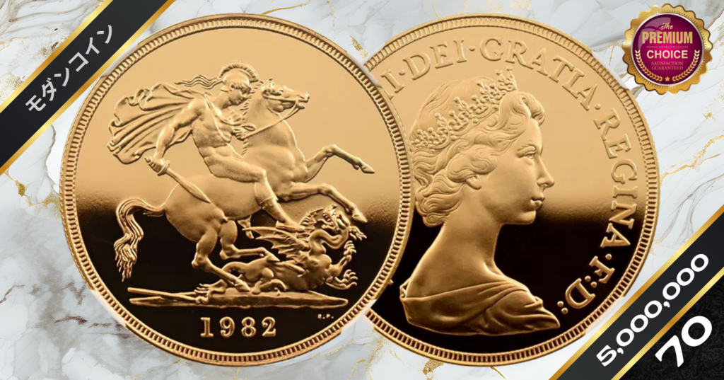 ヤングエリザベス肖像の制作秘話、聖ジョージ竜退治デザインの意義、そして1982年という時代にこの金貨が持つ意味──。