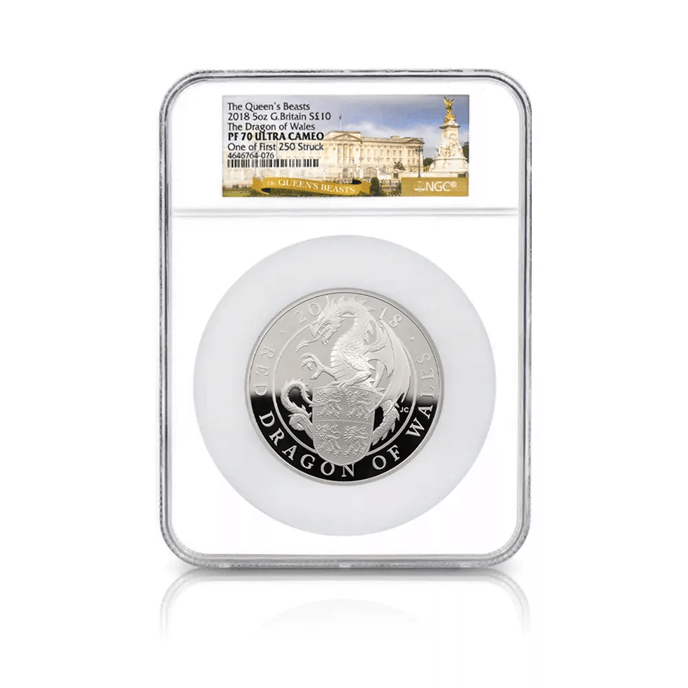 2018 エリザベス2世 クイーンズビースト ウェールズの赤いドラゴン 10ポンド5オンス銀貨 ファースト250ストラック NGC PF70UC