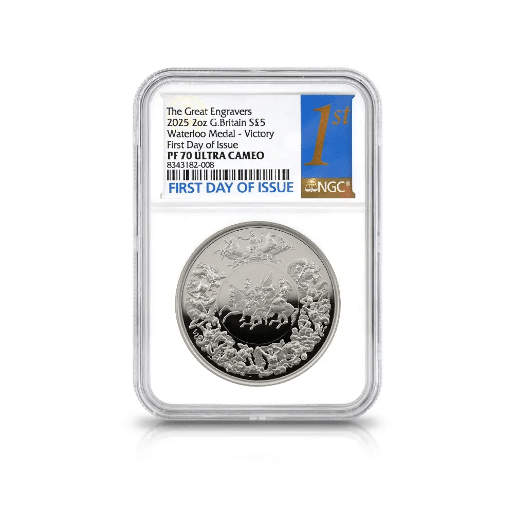 2025 チャールズ3世 ワーテルロー・メダル – 勝利 5ポンド2オンス銀貨 発行即日鑑定品 NGC PF70UC