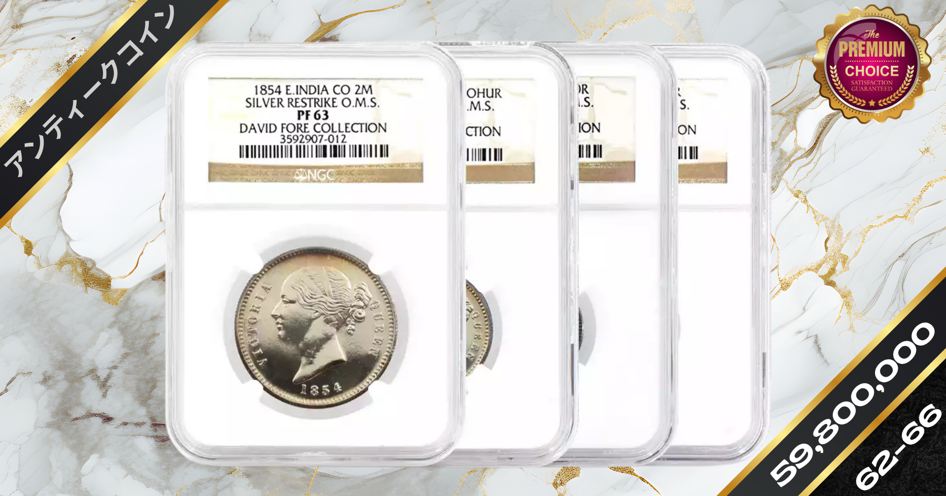 東インド会社 1854 ヴィクトリア女王 2モハール・モハール・10ルピー・5ルピー銀貨4枚セット リストライク NGC PF62-66