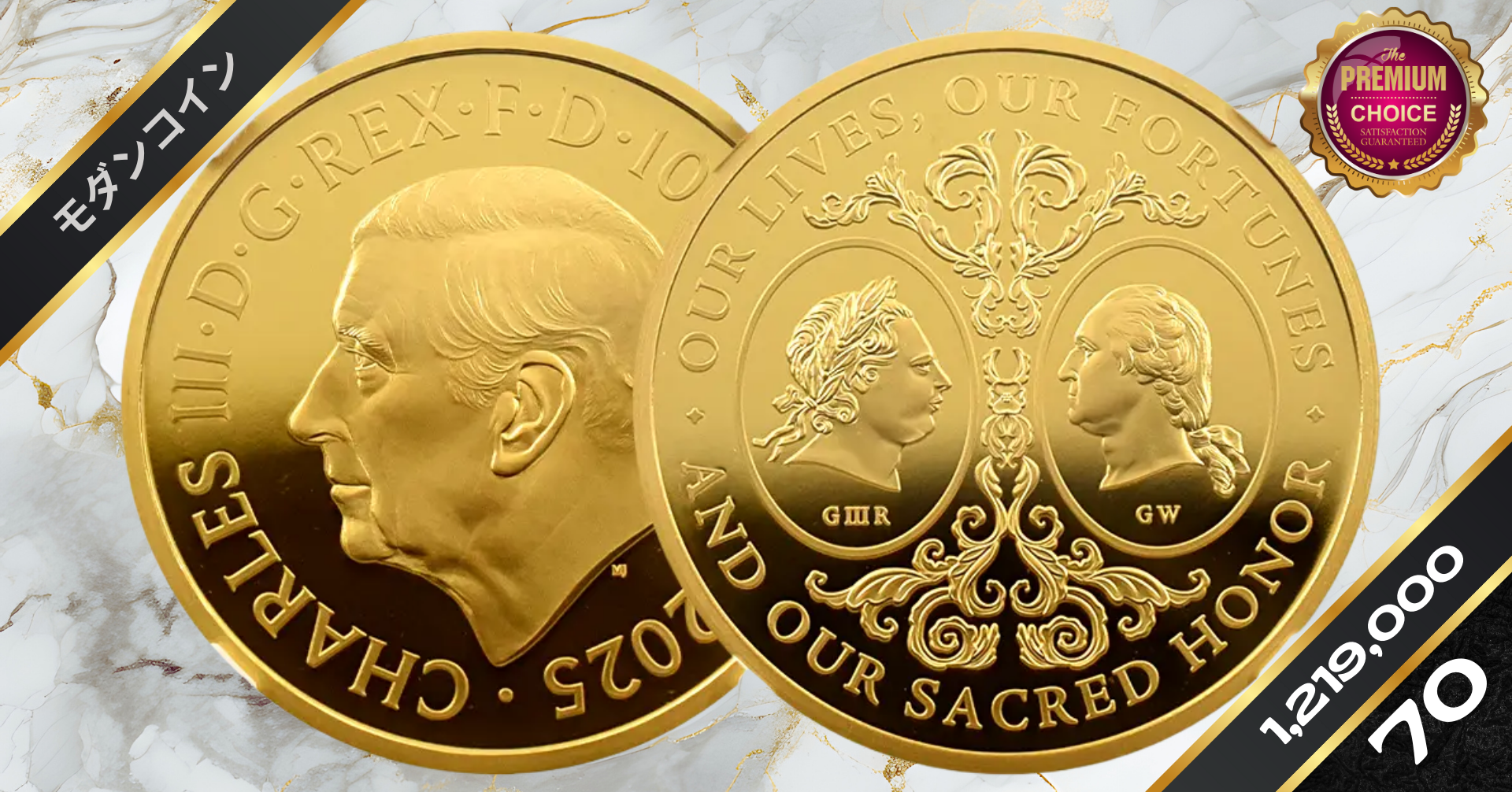 2025 チャールズ3世 アメリカ独立戦争250周年 ジョージ3世&ジョージ・ワシントン 100ポンド1オンス金貨 ファーストリリース NGC PF70UC
