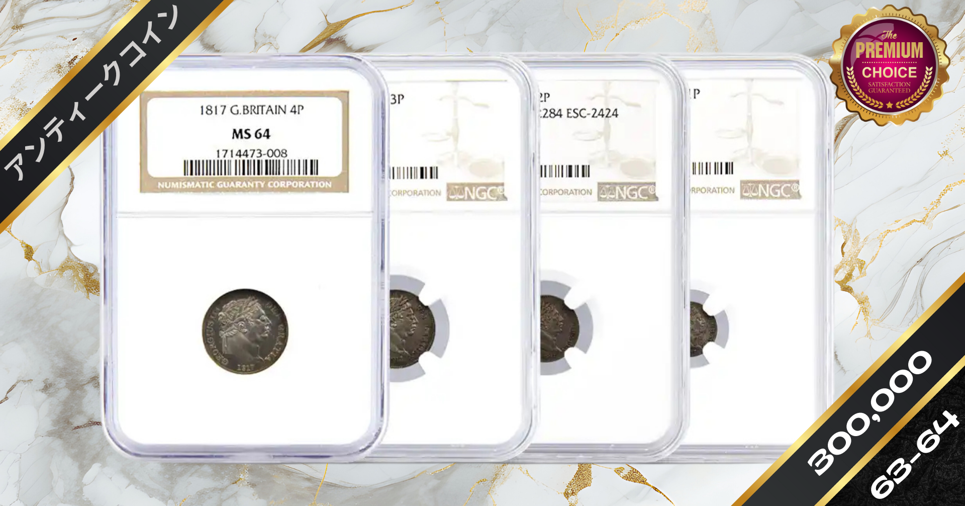 1817 ジョージ3世 1・2・3・4ペンス 銀貨4点セット NGC MS63・64