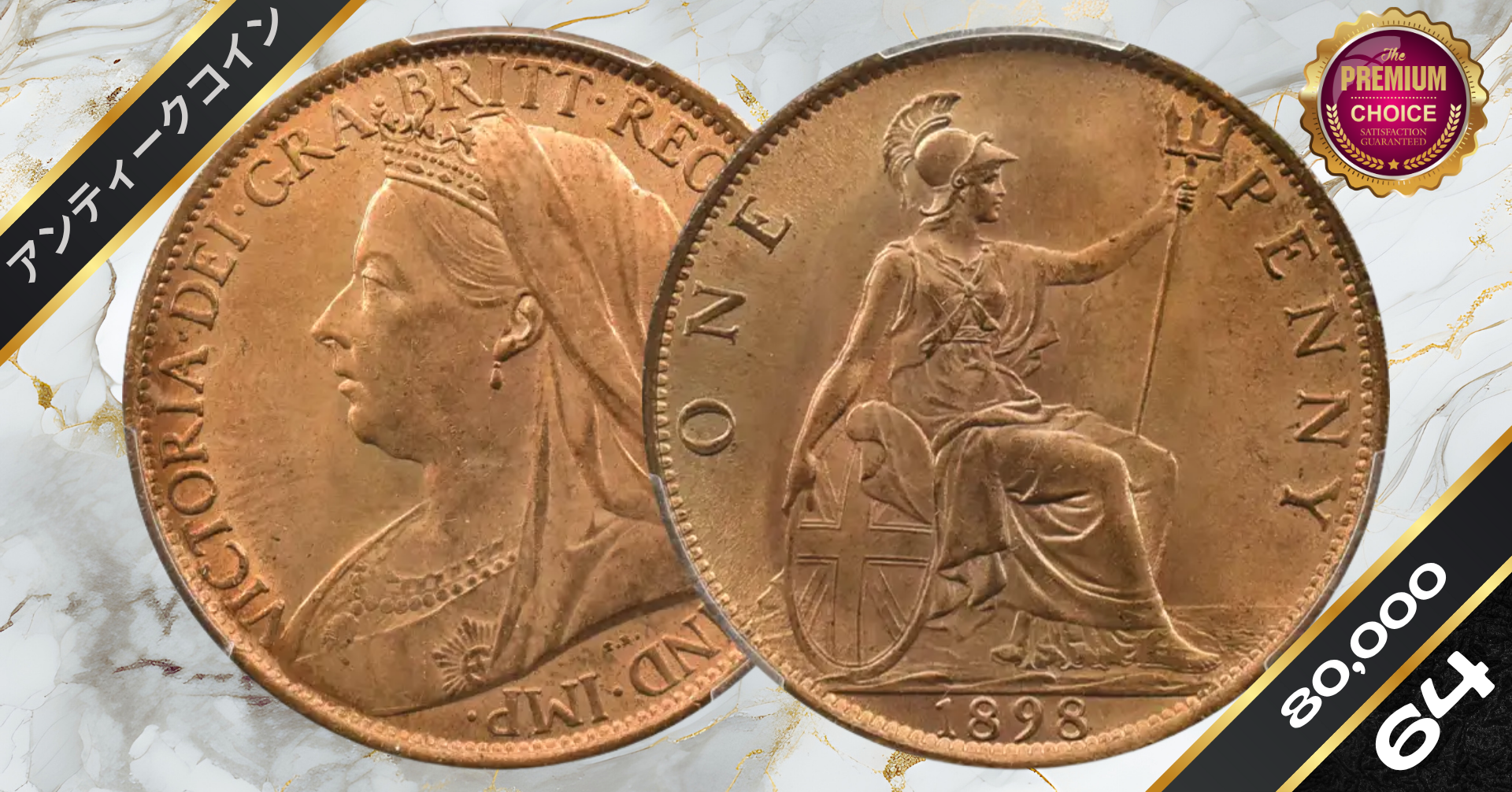 1898 ヴィクトリア女王 オールド(ヴェールド)ヘッド ブリタニア 1ペニー銅貨 PCGS MS64RB S-3961
