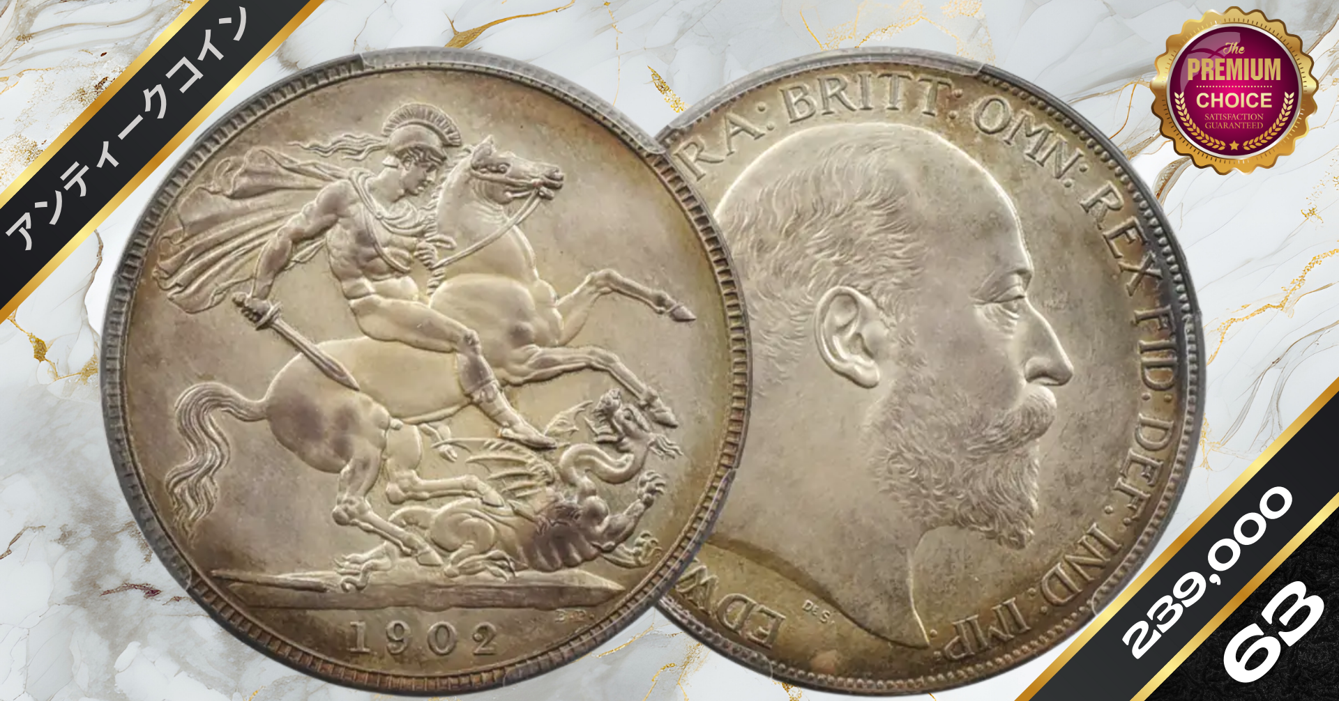 1902 エドワード7世 聖ジョージ竜退治 クラウン銀貨 マットプルーフ仕上げ NGC PF61