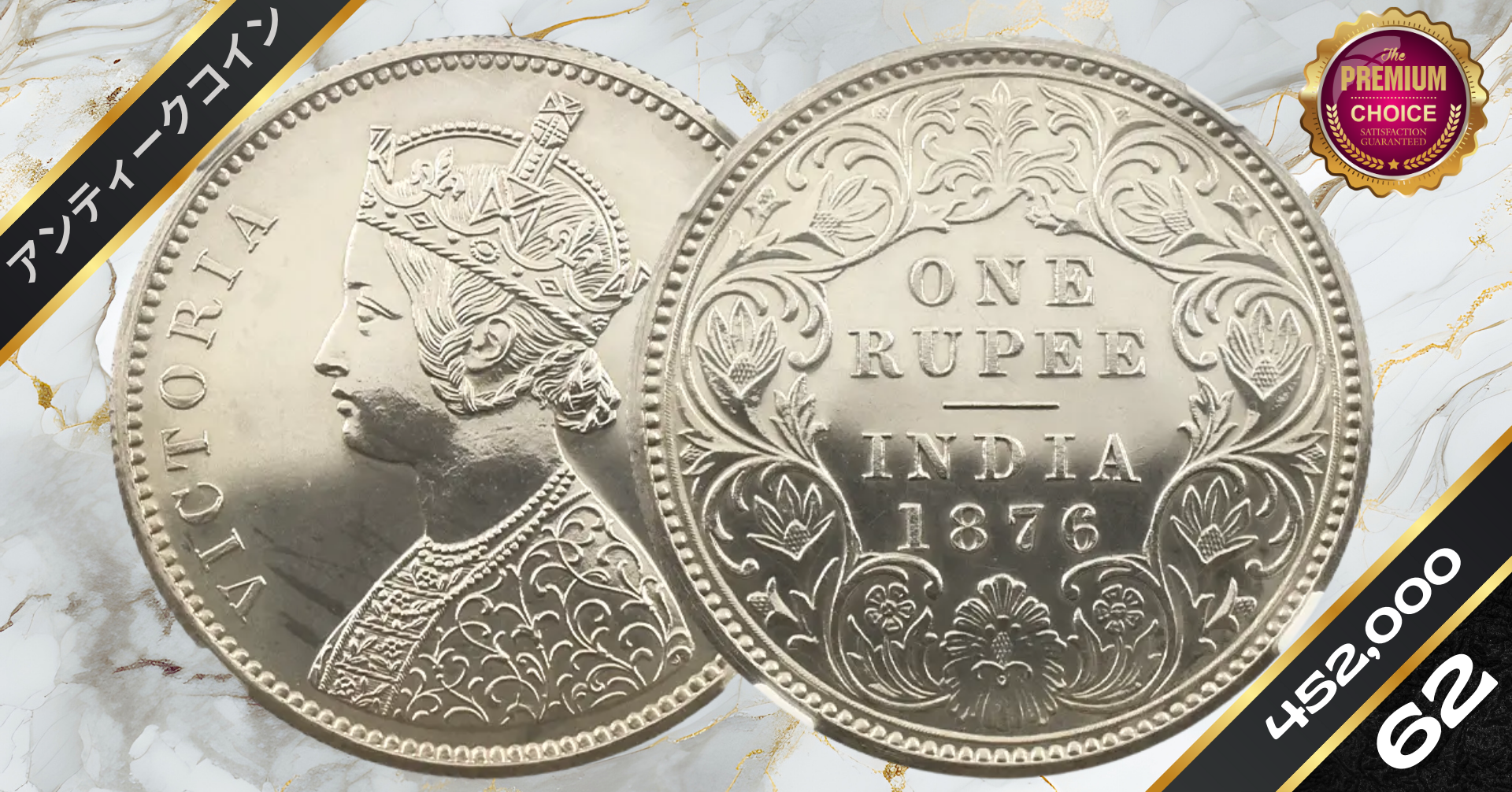 英領インド 1876C ヴィクトリア女王 ルピー銀貨 リストライク NGC PF62