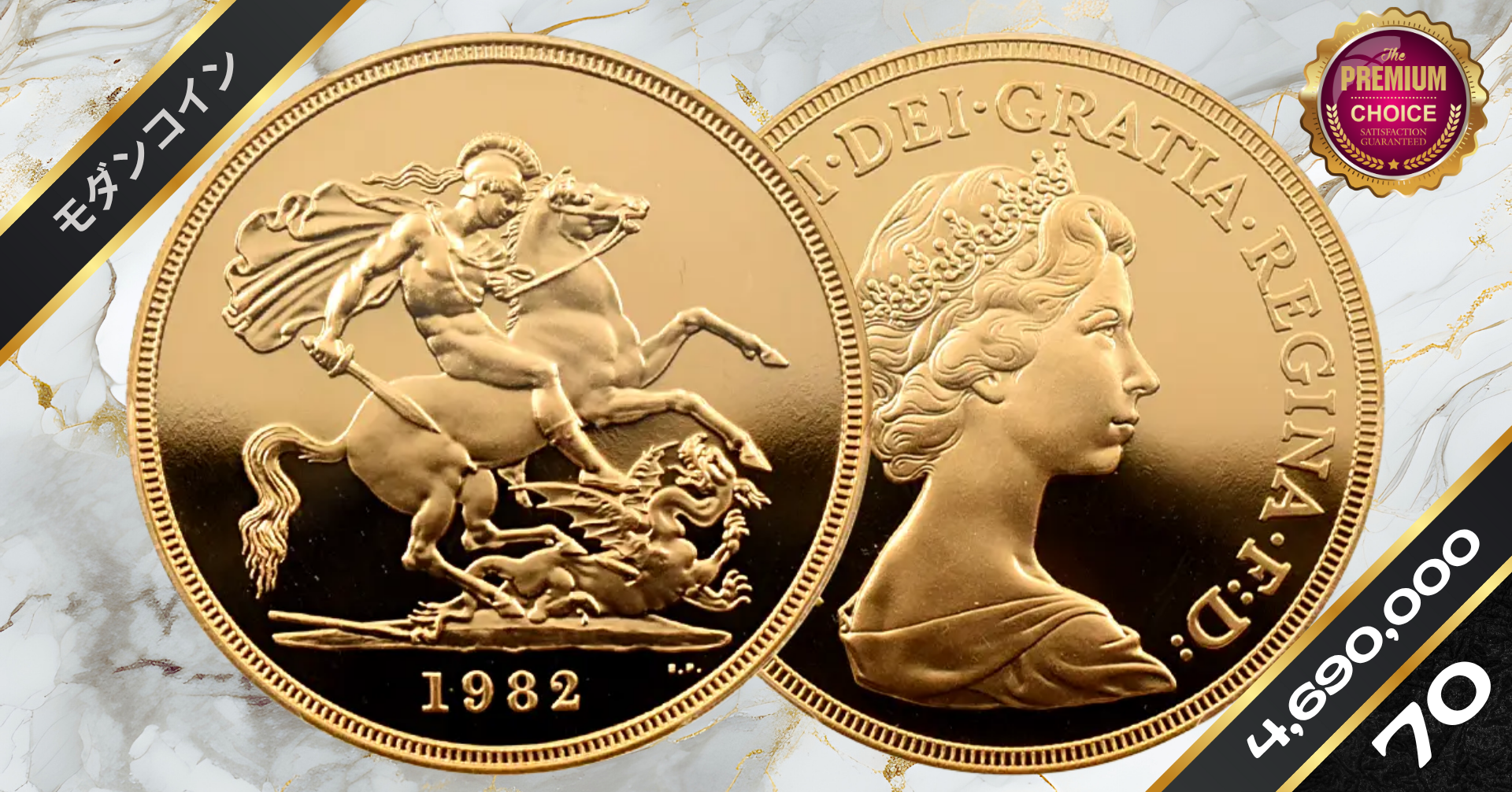 1982 エリザベス2世 ヤングエリザベス 聖ジョージ竜退治 5ポンド金貨 PCGS PR70DC S-4201