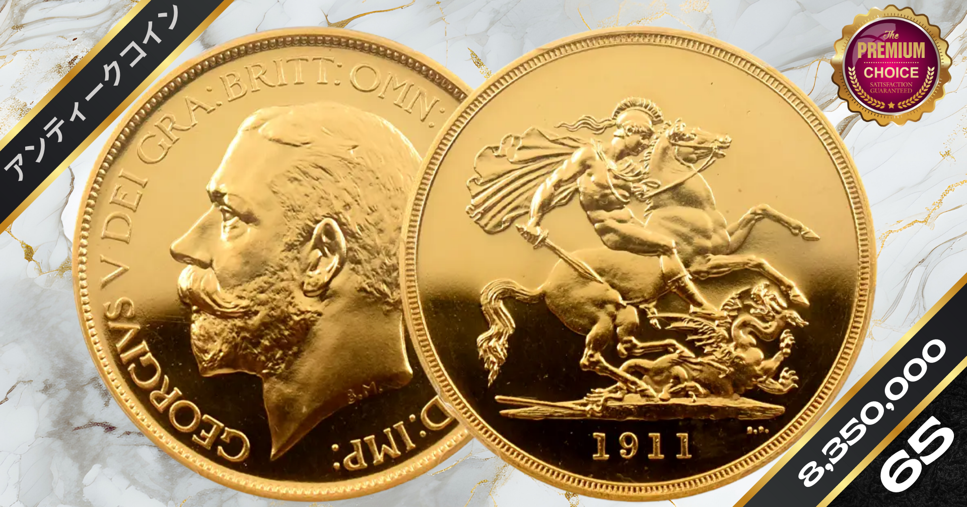 1911 ジョージ5世 聖ジョージ竜退治 5ポンド金貨 PCGS PR65CA S-3994 WR-414