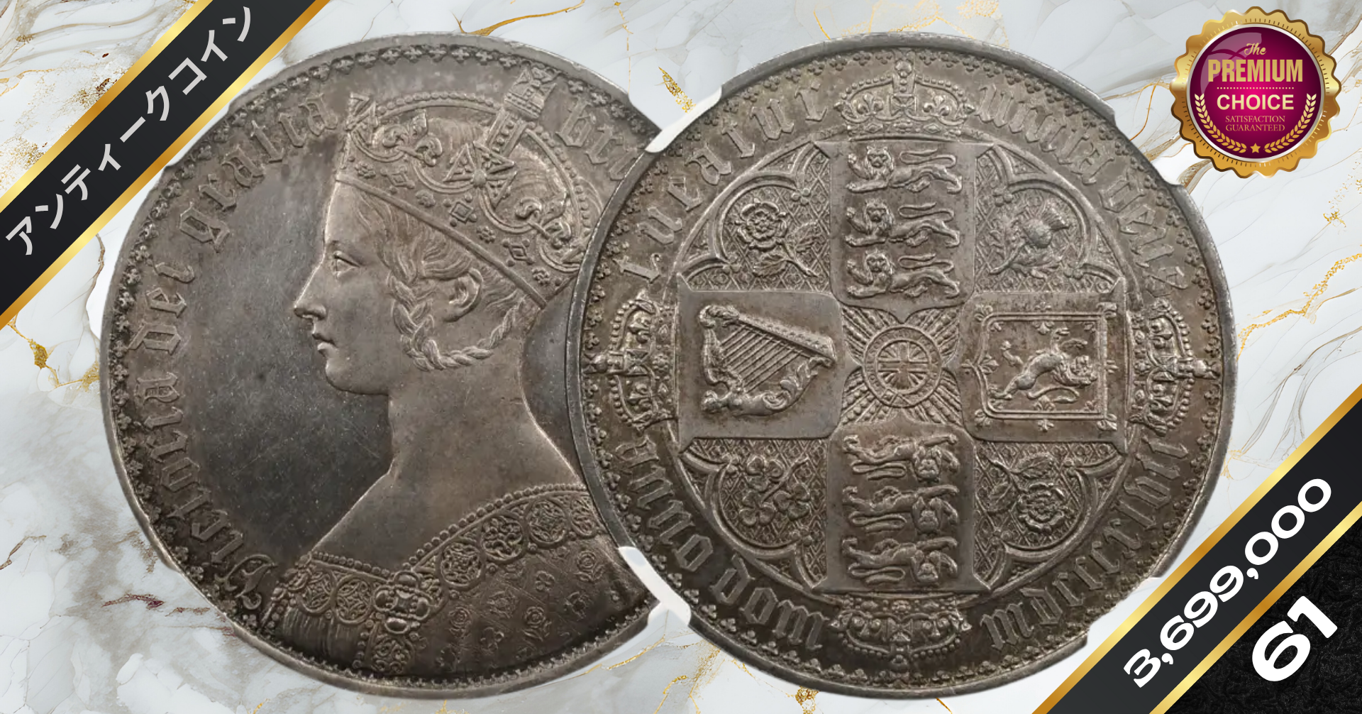 1847 ヴィクトリア女王 ゴチッククラウン銀貨 プレーンエッジ NGC PF62CA