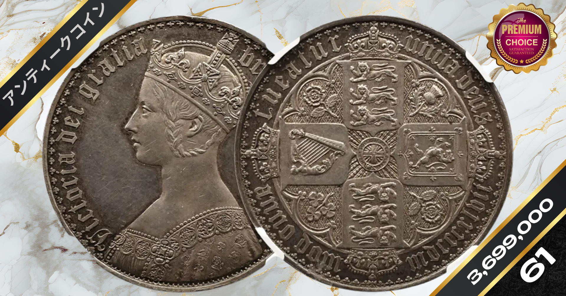 1847 ヴィクトリア女王 ゴチッククラウン銀貨 アンデシモエッジ NGC PF61